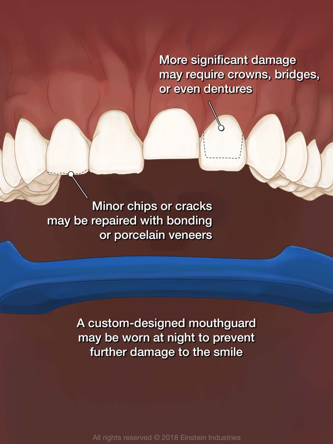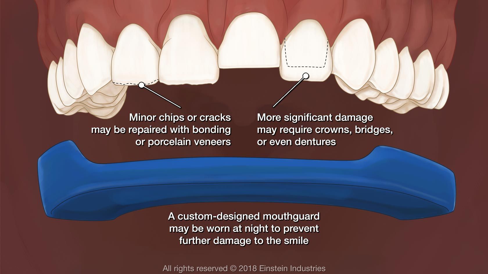 Additionally, your dentist may recommend whether custom dental crowns are needed to strengthen any teeth previously damaged by teeth grinding