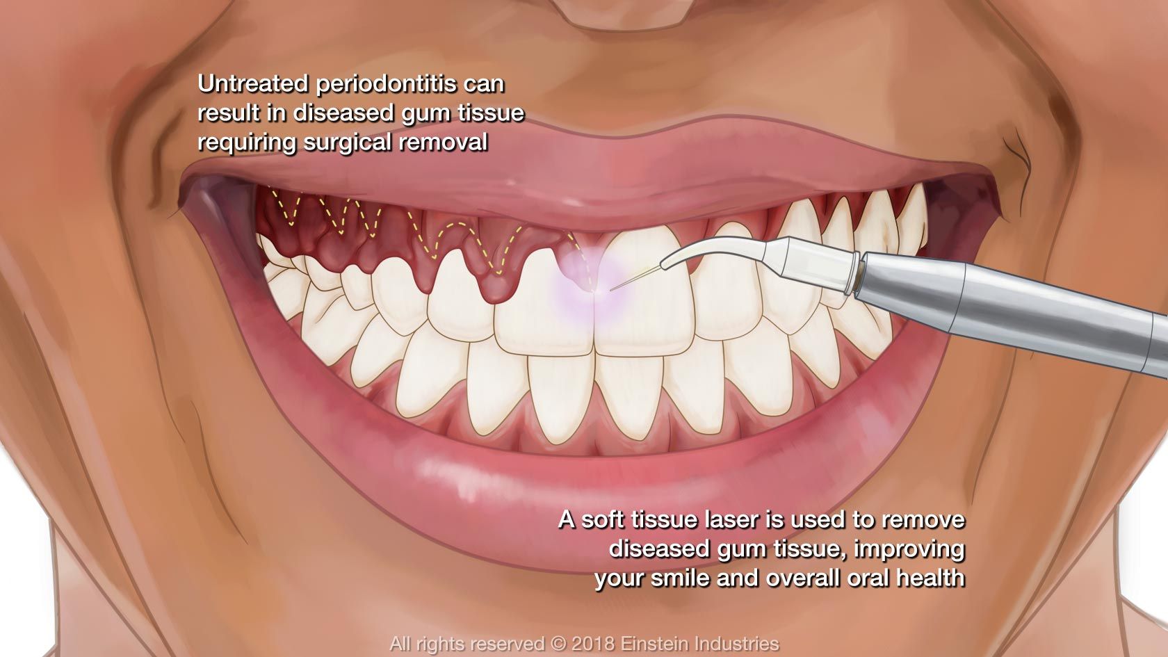Using a laser or scalpel, the dentist will incise and remove diseased tissue.