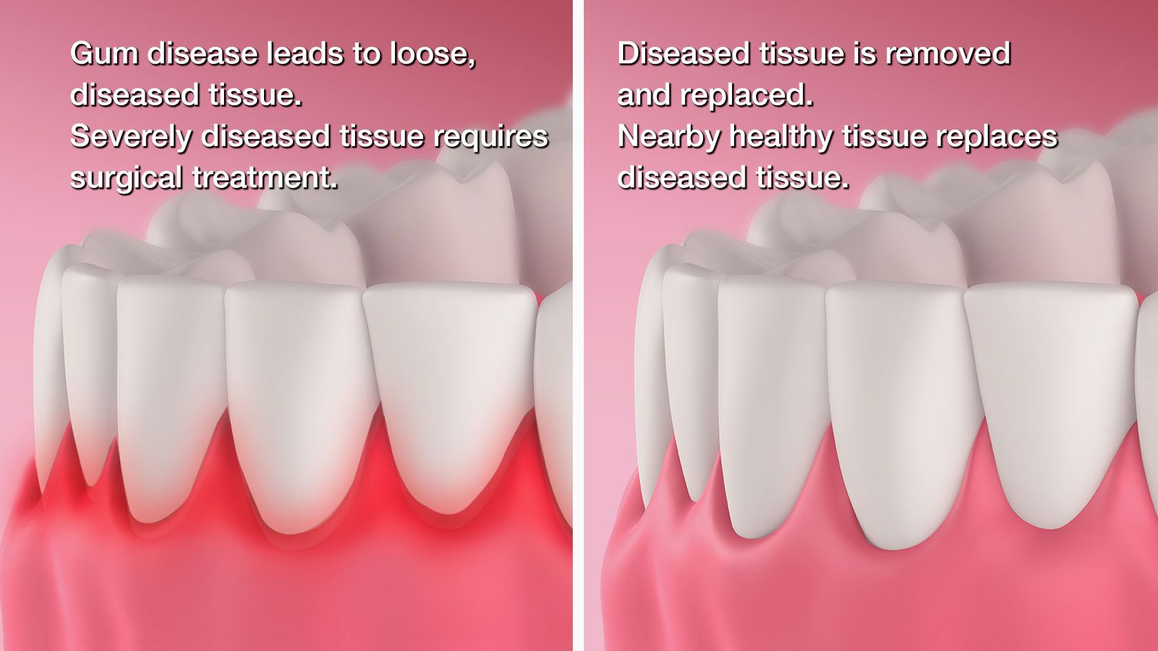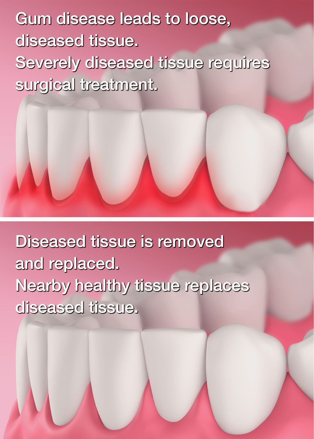 Advanced gum disease causes loose tissue around the teeth. Eventually, nonsurgical treatments may not work, and the risk of tooth loss increases.